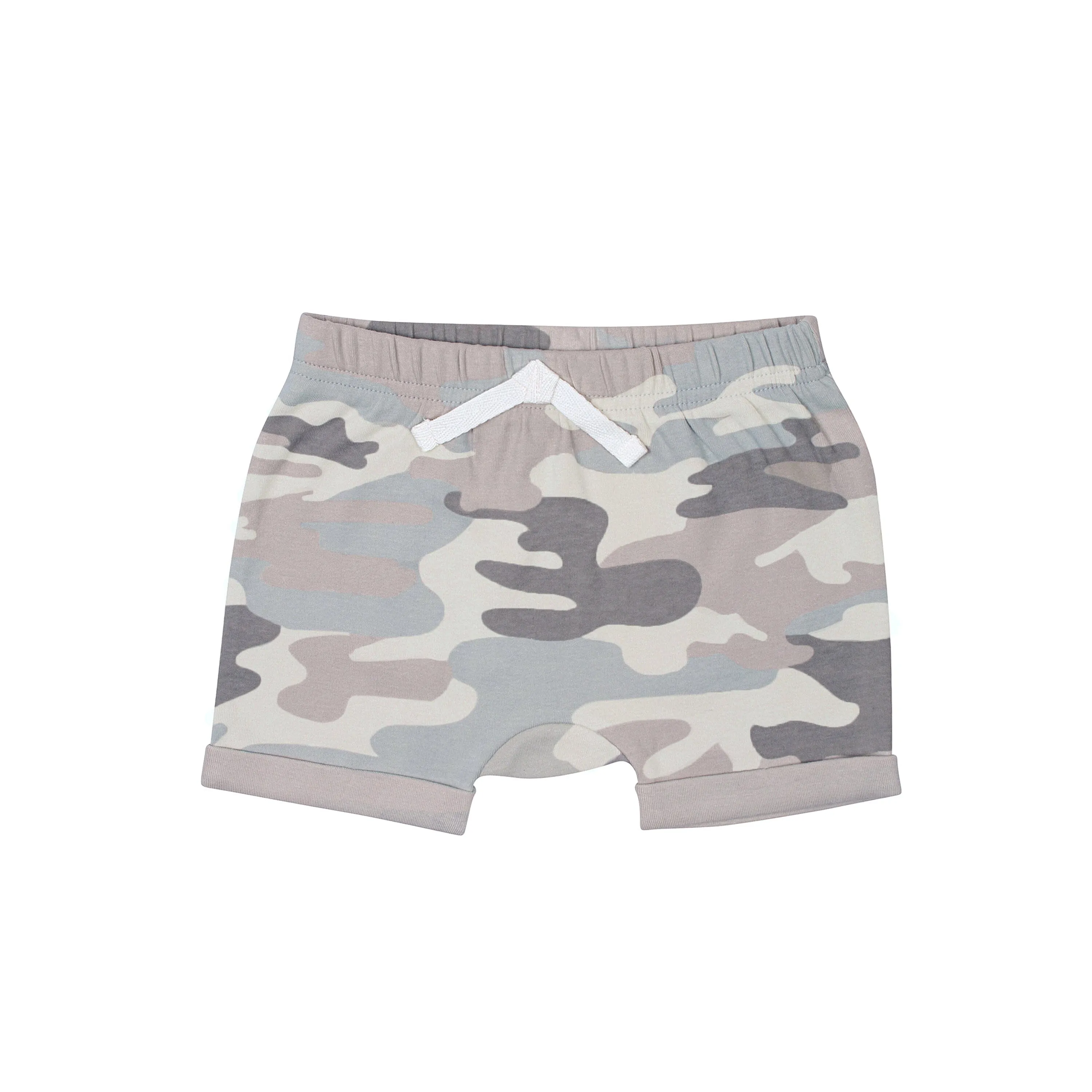 Our baby shorts are perfect to mix and match with their favorite tees, Onesies® bodysuits and accessories. Each pair is made with super soft cotton fabric blended with a touch of spandex. The shorts feature gentle elastic waistbands for quick and easy changes. Our essentials have been independently certified with STANDARD 100 by OEKO-TEX® so that you don’t have to worry about harmful substances in your baby’s wardrobe. This pack includes four pairs of blue and gray solid, camo, and striped and baby boy shorts.