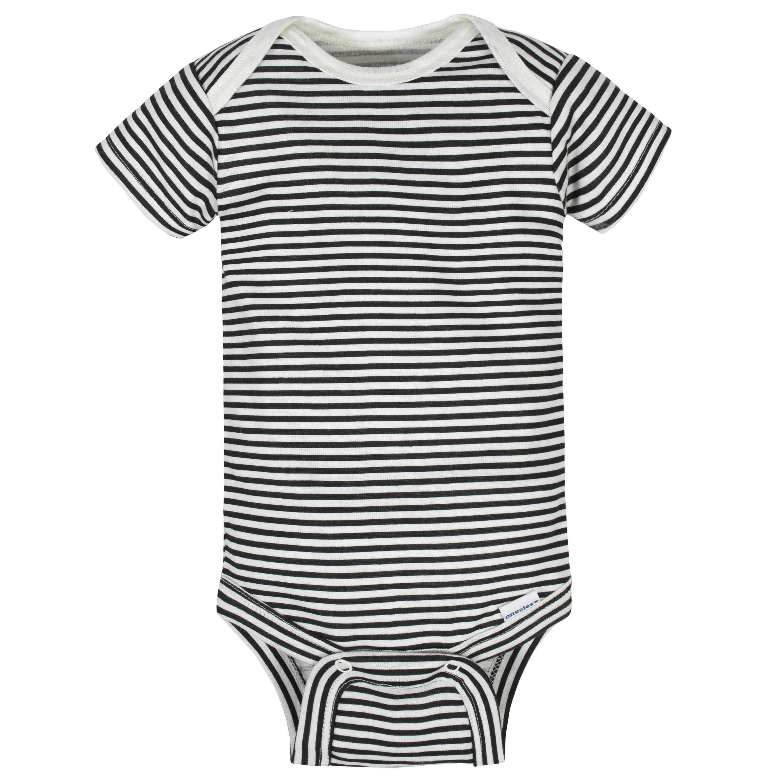 Baby Onesies® bodysuits are essential for baby! These adorable, assorted Onesies® bodysuits are made with a soft cotton fabric that’s perfectly comfortable against baby’s delicate skin. Baby will love how breathable this material is! We had this product independently certified with STANDARD 100 by OEKO-TEX® so that you don’t have to worry about harmful substances in your baby’s clothing. This pack includes four bodysuits. These classic baby clothes feature lap shoulder necklines that make wardrobe changes easier than ever. The necklines allow the garment to slip over baby’s head in total comfort. They also feature bottom snap enclosures that are conveniently positioned higher in front to quicken diaper changes. Gerber® Onesies® bodysuits are machine washable and machine dryable. Gerber® offers quality products that parents trust to bring their babies style and comfort.