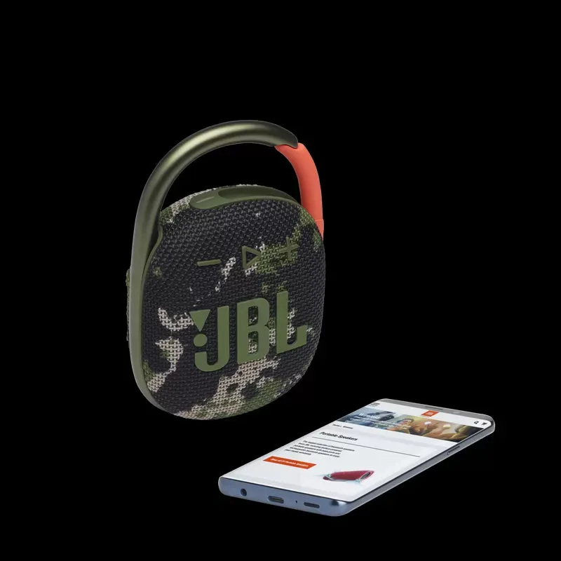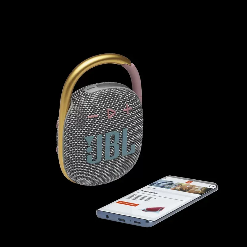 Cool, portable, and waterproof. The vibrant fresh looking JBL Clip 4 delivers surprisingly rich JBL Original Pro Sound in a compact package. The unique oval shape fits easy in your hand. Fully wrapped in colorful fabrics with expressive details inspired by current street fashion, it’s easy to match your style. The fully integrated carabiner hooks instantly to bags, belts, or buckles, to bring your favorite tunes anywhere. Waterproof, dustproof, and up to 10 hours of playtime, it’s rugged enough to tag along wherever you explore.