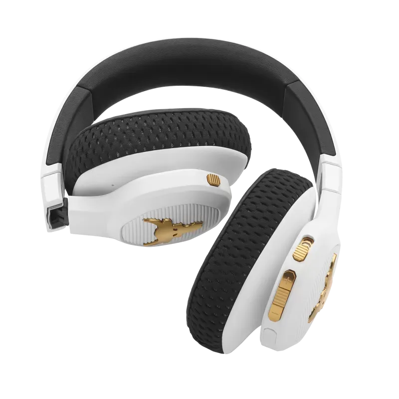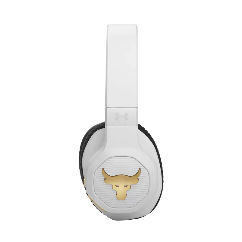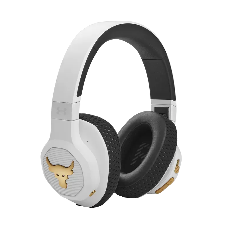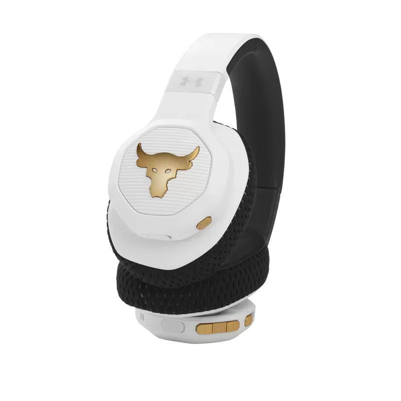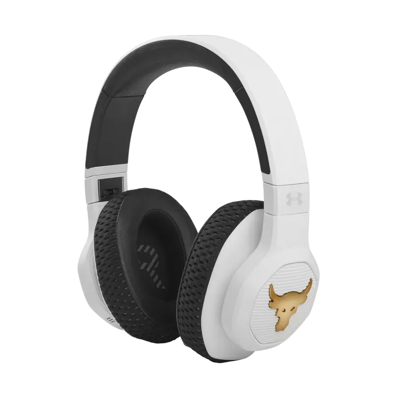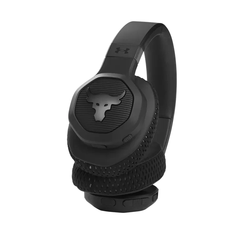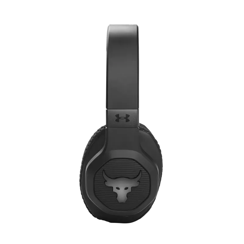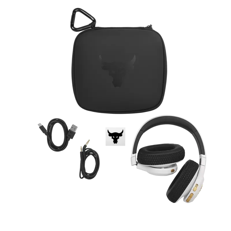 UA Project Rock Over-Ear Training Headphones are tested and approved by Dwayne Johnson himself, built to help you grind harder—with Adaptive Noise Cancelling for ultimate focus, and a durable sweatproof construction. Washable Supervent ear cushions stay dry, and UA Storm Super Grip provides maximum stability. JBL Charged Sound is tuned to maximize motivation, and Bionic Hearing features TalkThru Technology for talking to training partners, and Ambient Aware Technology to hear surroundings. Give voice assistants quick commands and customize your sound with the JBL app. With up to 45-hours of playtime and a hardshell case there's nothing that will hold you back.