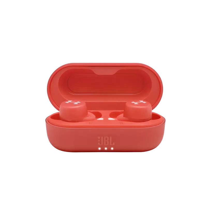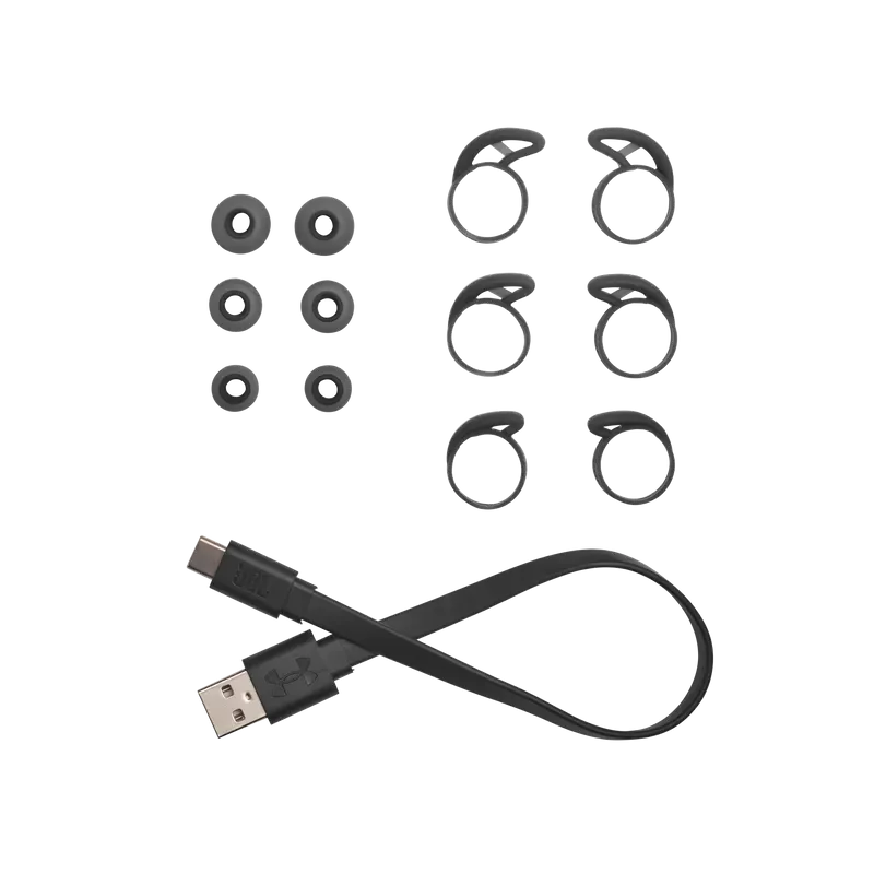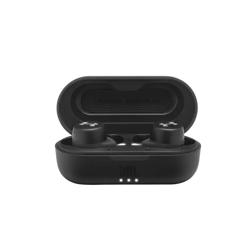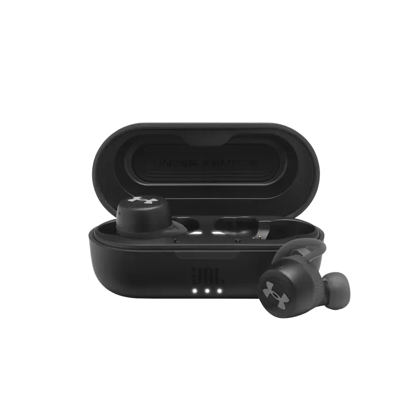 UA True Wireless Streak is engineered to maximize performance while minimizing size and distractions. A lightweight design with Sport Flex Fit ear tips provides optimized comfort and secure fit tested by athletes. UA waterproof technology delivers element-battling protection, while JBL Charged Sound is boldly tuned with rich bass for motivation. Bionic Hearing features TalkThru Technology to quickly interact with your workout partner, and Ambient Aware Technology to hear your surroundings. A quick tap provides seamless controls, and reflective accents allow you to stay seen. A pocketable charging case provides 18 hours of total playtime, powering you to achieve your personal best.