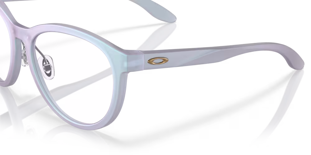 This youth girl prescription eyewear blends self-expression with Asian inspiration. Aglow features a full-rim lightweight O-Matter™ frame design with angled grip-fit clear nosepads and Ace-fit temples. Aglow is available in a range of fun dual-tone colors, and stylized stem markings. Available Oakley Authentic Prescription lenses—laser-etched with the ellipse logo for proof of authenticity and quality. • DESIGN: Full-rim design in a youthful and feminine oval lens shape.