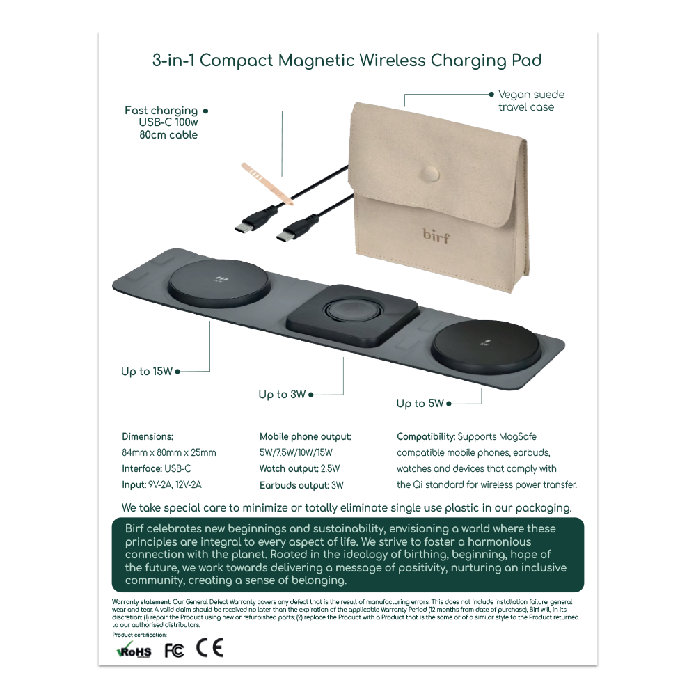 Birf 3-in-1 Compact Magnetic Wireless Charging Pad