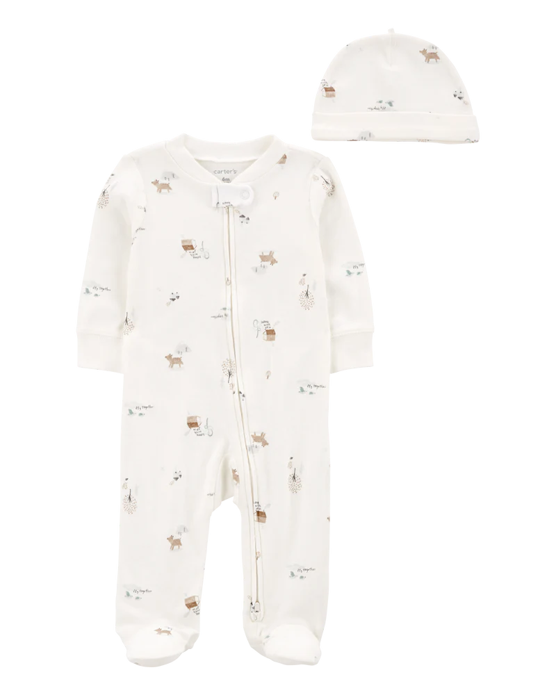 Carter's Baby 2-Piece Floral 2-Way Zip Cotton Sleeper & Cap Set