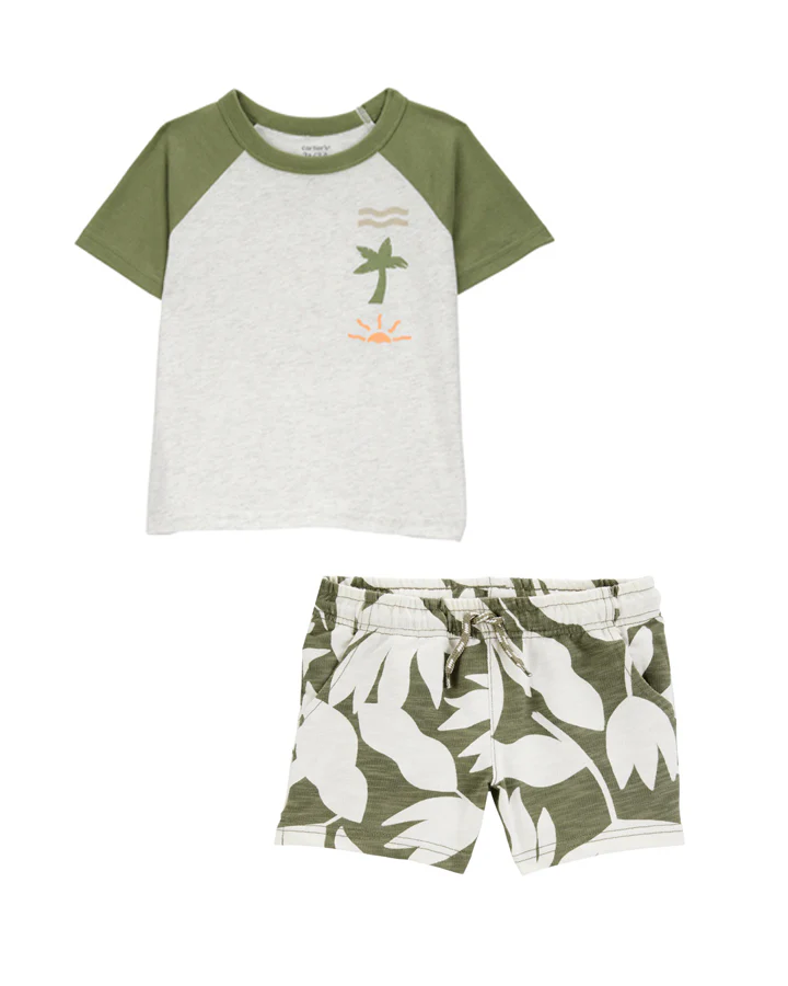 Carter's Toddler Tropical Cotton Blend Short-Sleeve Tee with French Terry Shorts