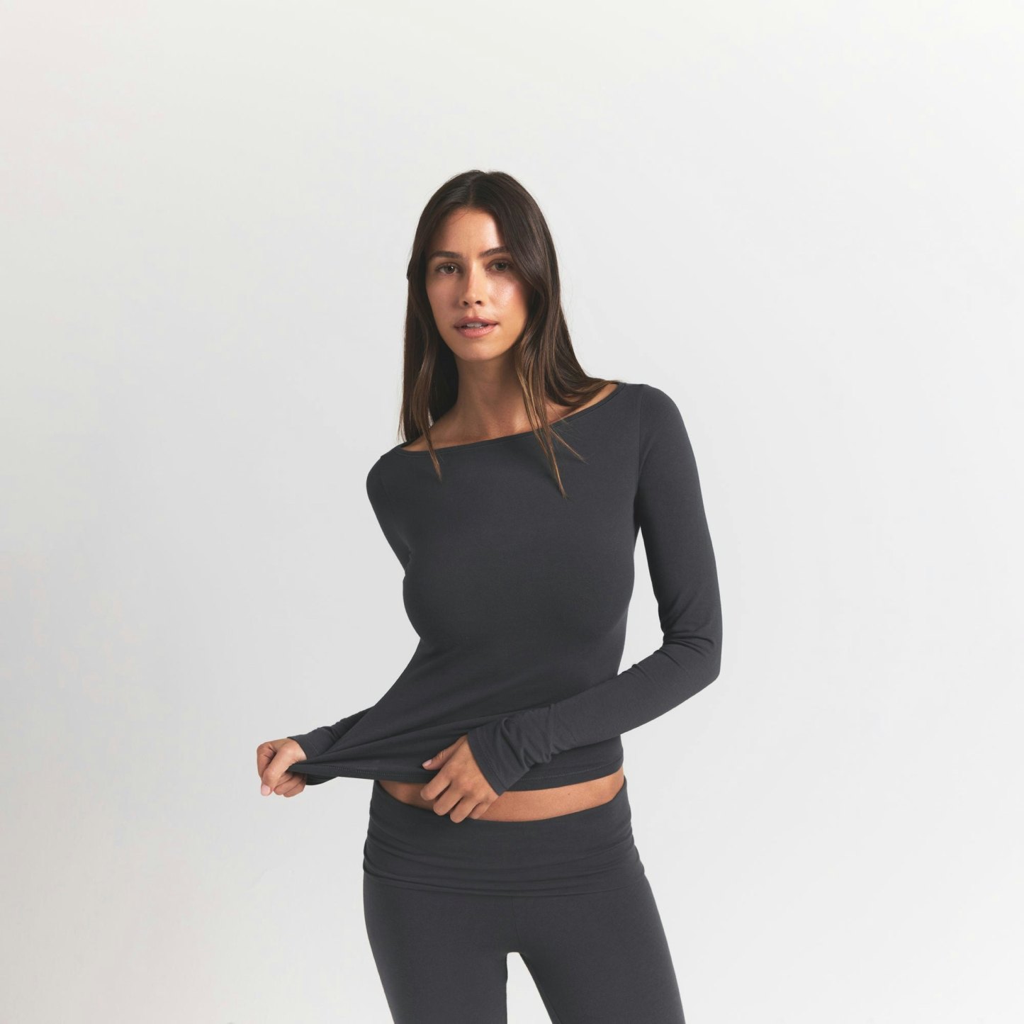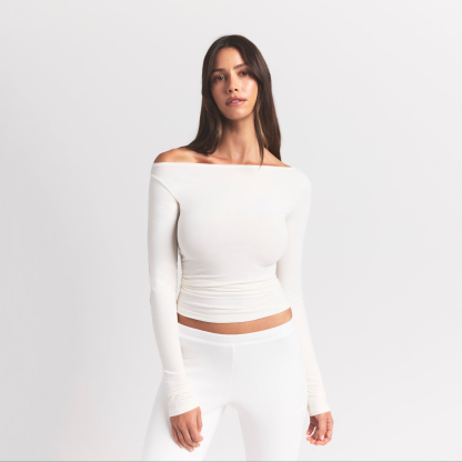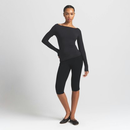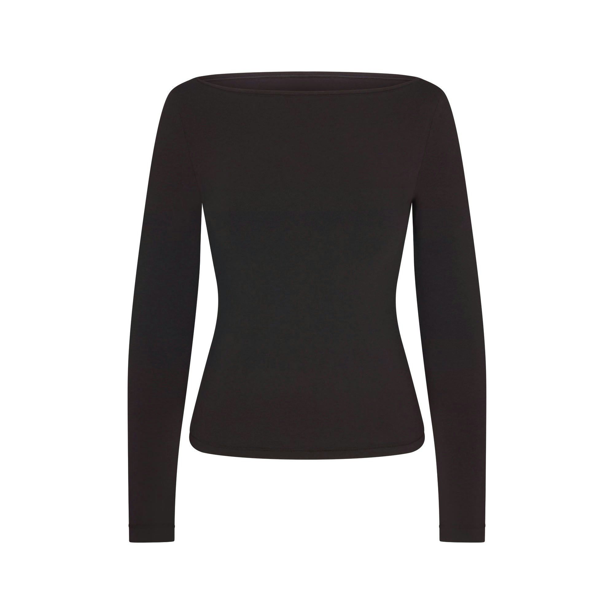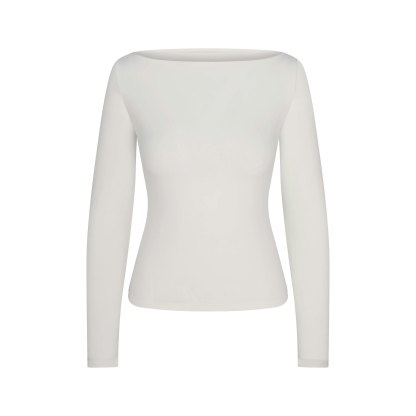 COTTON JERSEY LONG SLEEVE BOATNECK TOP