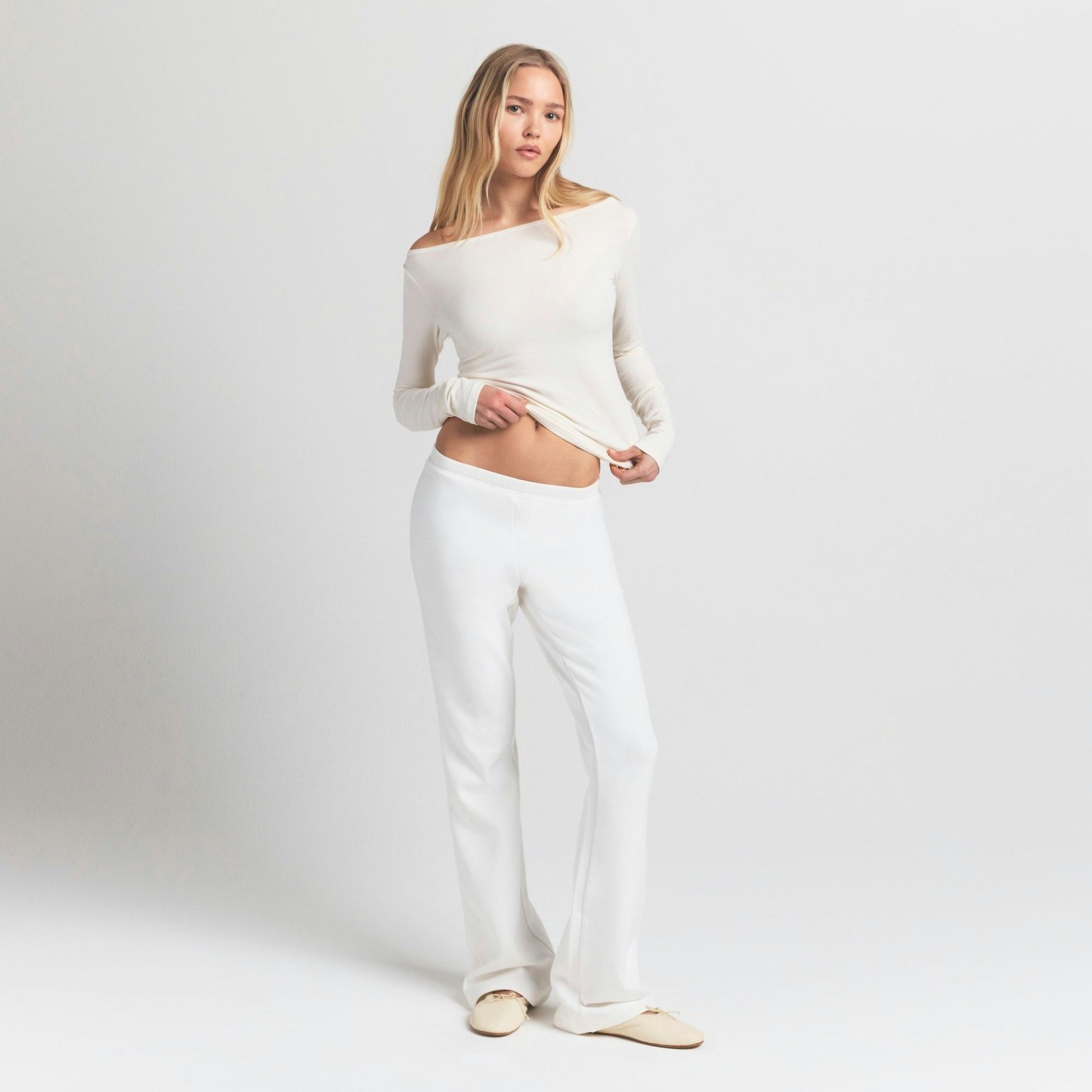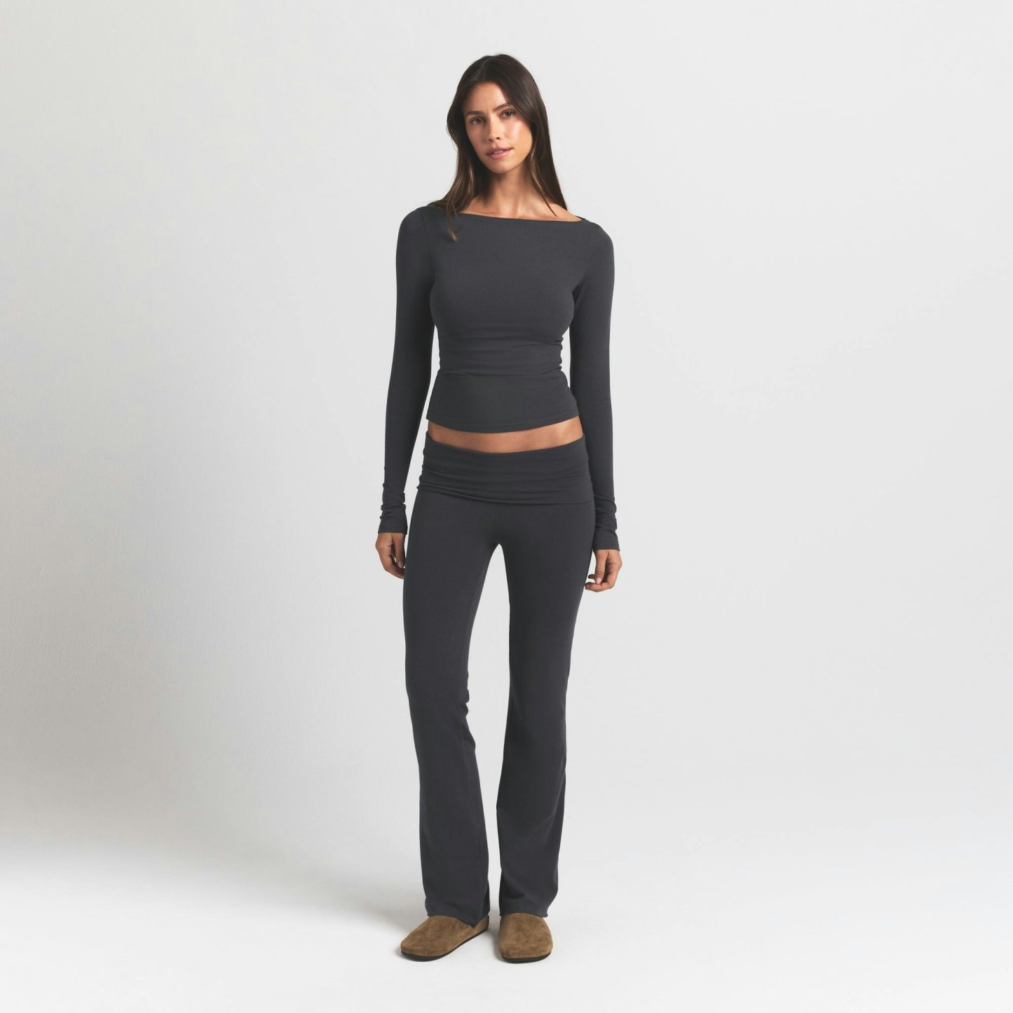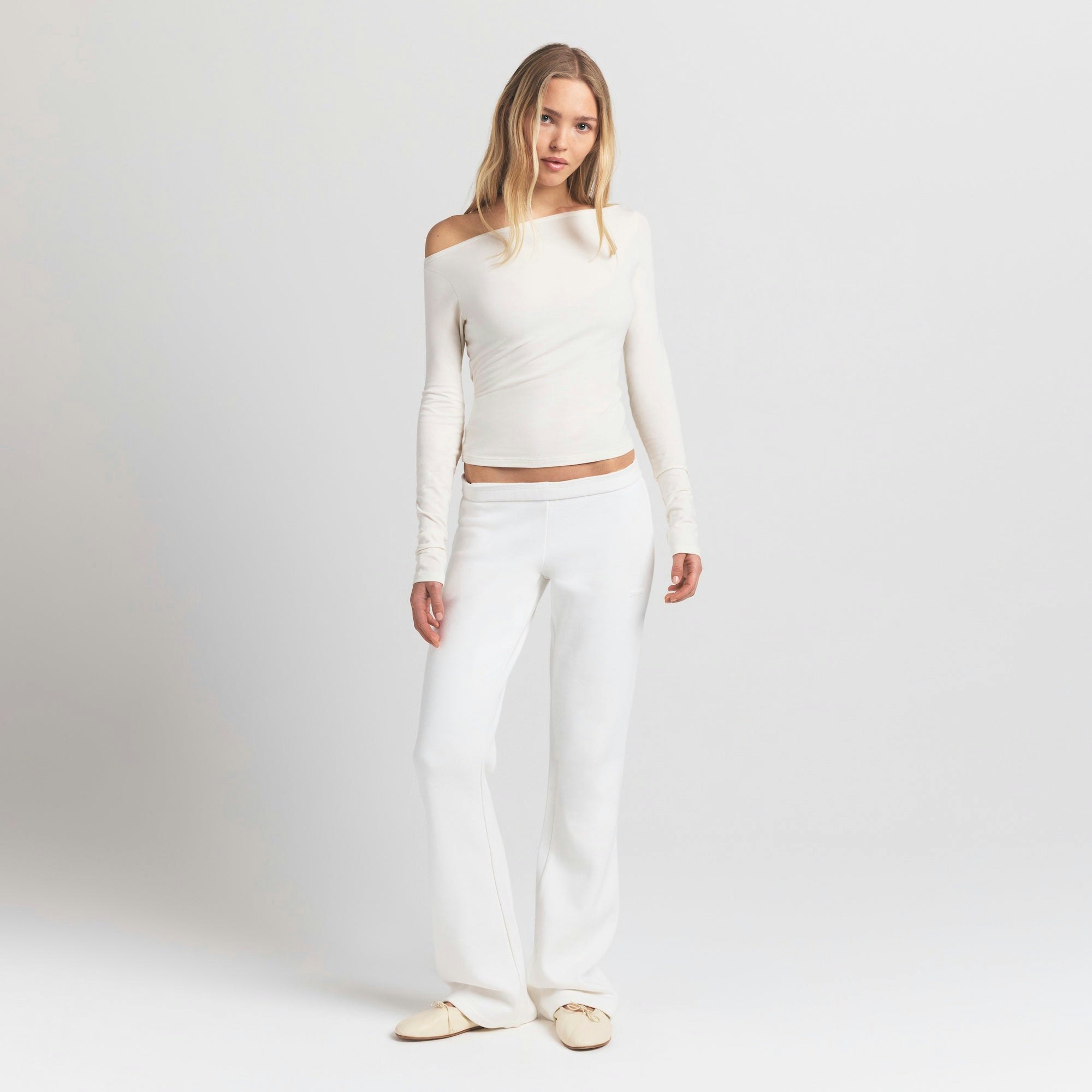 COTTON JERSEY LONG SLEEVE BOATNECK TOP