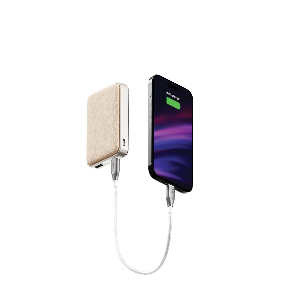 For the perfect on-the-go companion, pair this Power Bank with an Armoured Cable. Designed with double-braided nylon and strain relief to minimize fraying, it's built for durability and long-lasting performance.