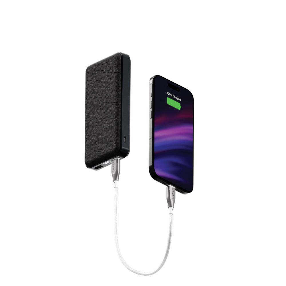 For the perfect on-the-go companion, pair this Power Bank with an Armoured Cable. Designed with double-braided nylon and strain relief to minimize fraying, it's built for durability and long-lasting performance.