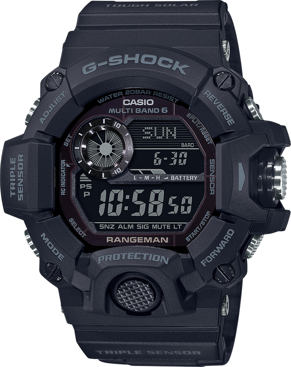 Introducing RANGEMAN, the latest addition to the Master of G series of tough and rugged timepieces that are designed and engineered to stand up to the most grueling conditions imaginable. RANGEMAN employs a Shock Resistant Triple Sensor, which makes it capable of keeping altitude, barometric pressure, temperature and direction readings at your fingertips.