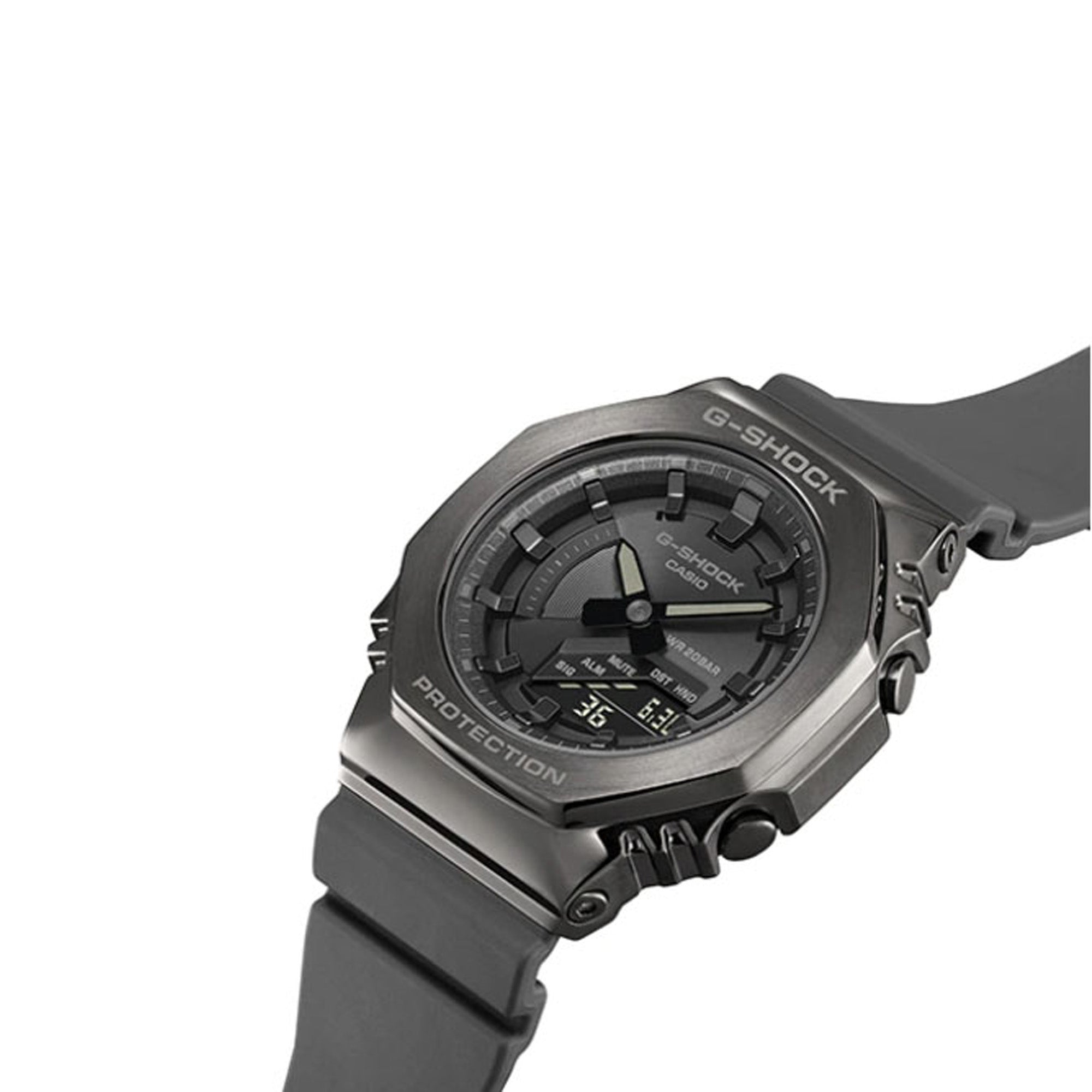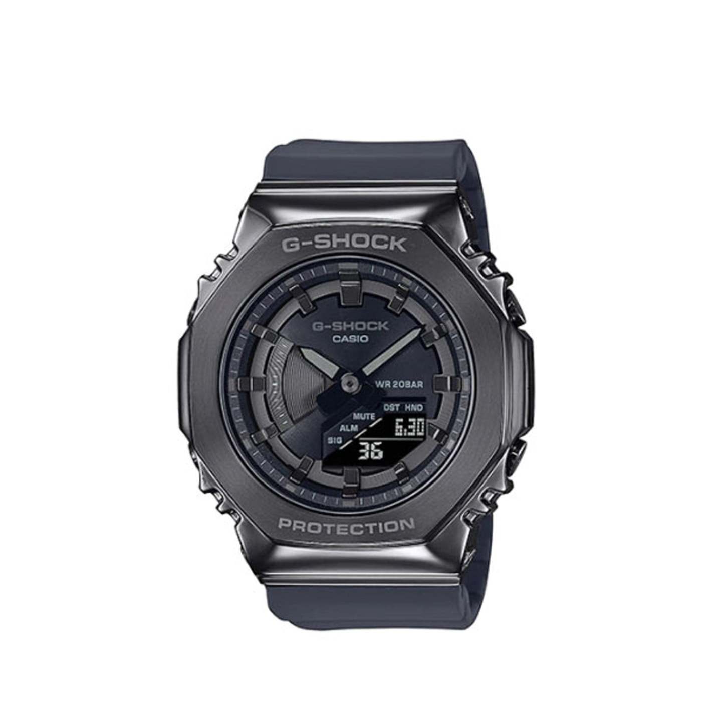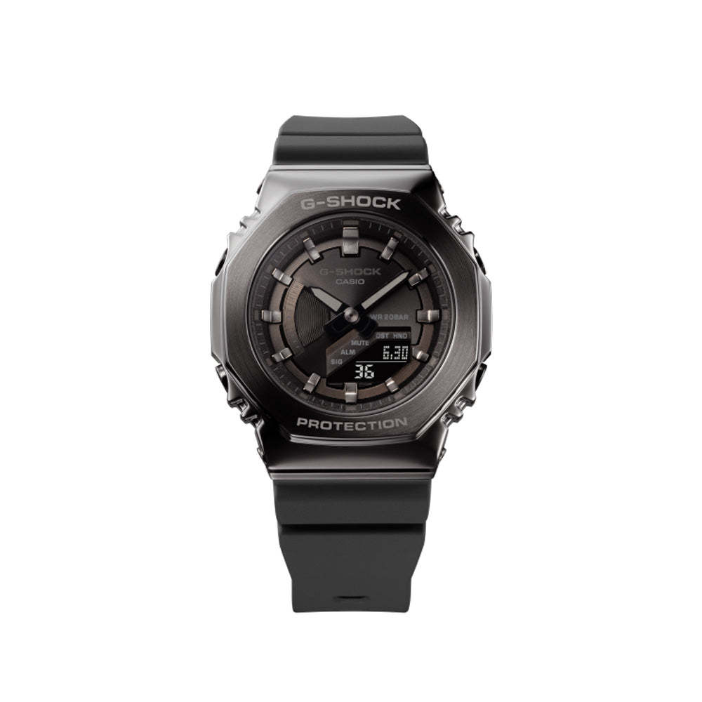 Go slim, clean and bold with a mid-sized G-SHOCK in a metal-clad octagonal take on the original iconic design.