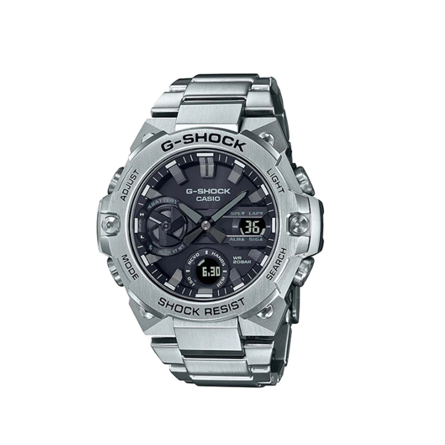 Introducing new color variations to the lineup of slim G-STEEL GST-B400 models with new, improved designs made possible by a thin module and carbon core guard structure. There is a standard model in this lineup, the all-silver color GST-B400D.