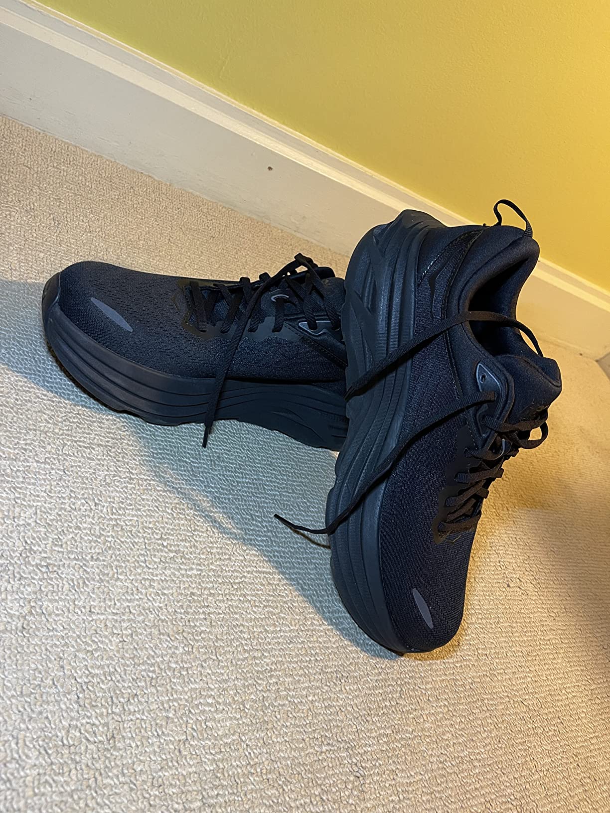 Love these shoes. Heels don’t ache ! No knee pain and I walk at work 5 to 6 miles a day. Best ever. Finally found a pair that were all black. Didn’t like the godly white shoe soles.