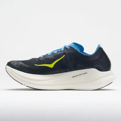 Emerge from the pack in the HOKA Rocket X 2! This neutral running shoe ignites the explosion with a propulsive carbon fiber plate sandwiched between responsive midsole foams. Stay secure at high speeds as the synthetic mesh upper provides a foot-hugging fit. A sleek gusset and internal midfoot cage create a comfortable lockdown for race day. If you want to launch past your limits, lace up the HOKA Rocket x 2!