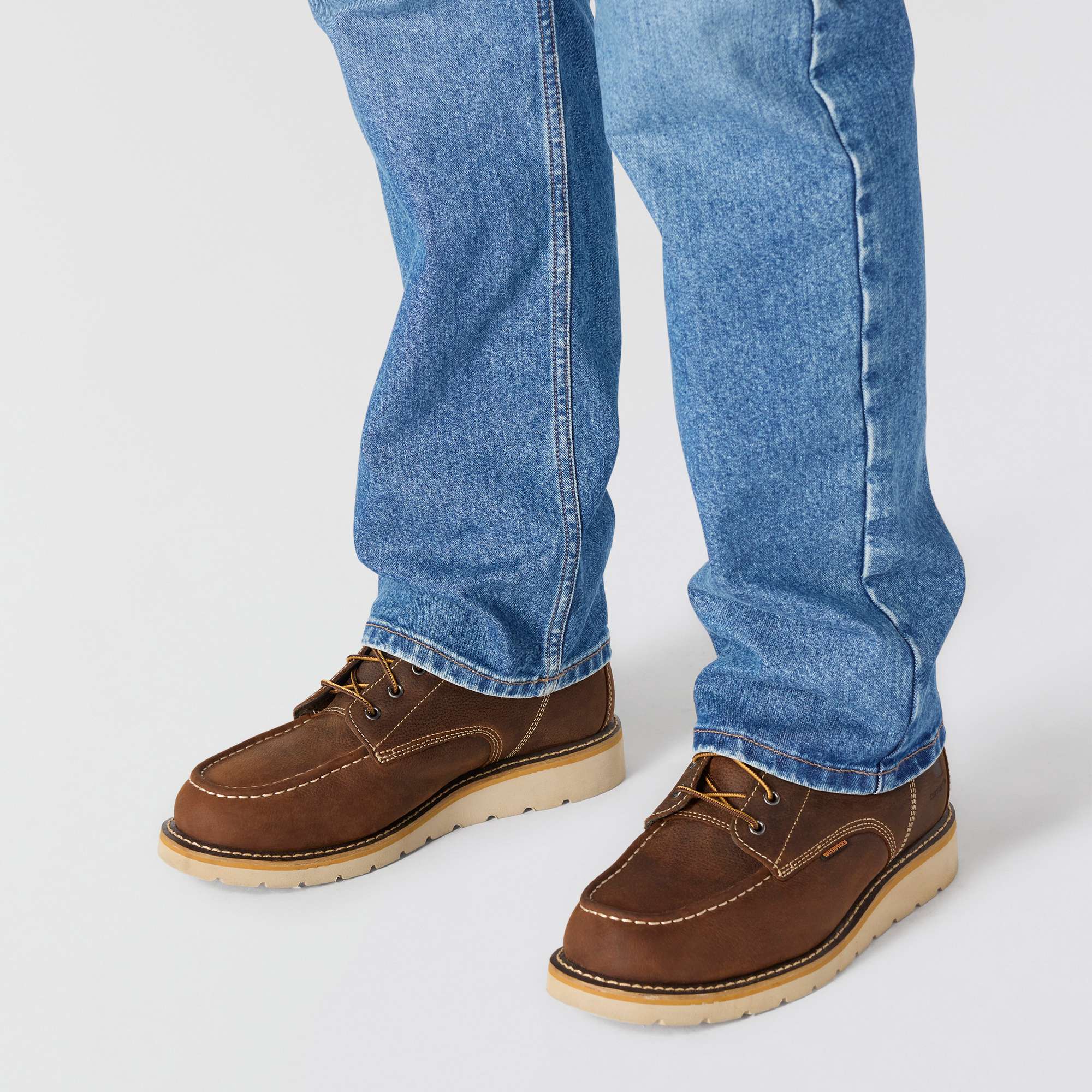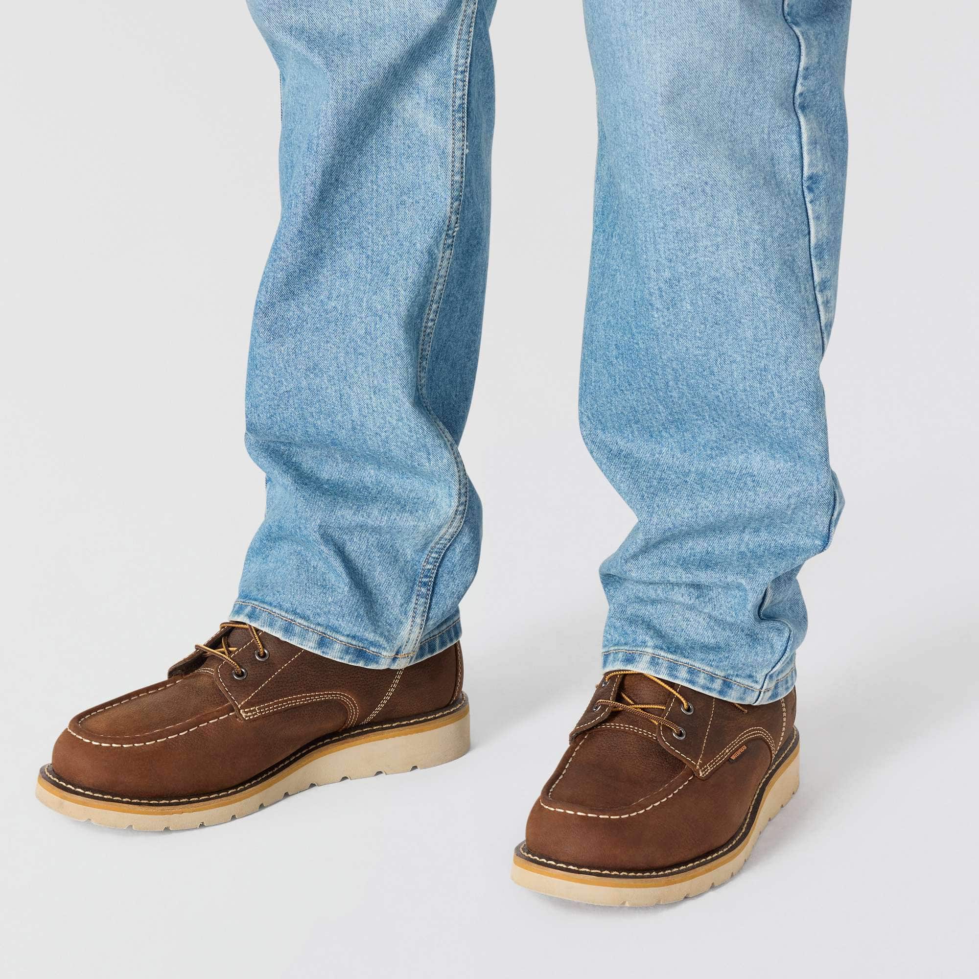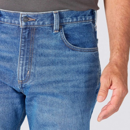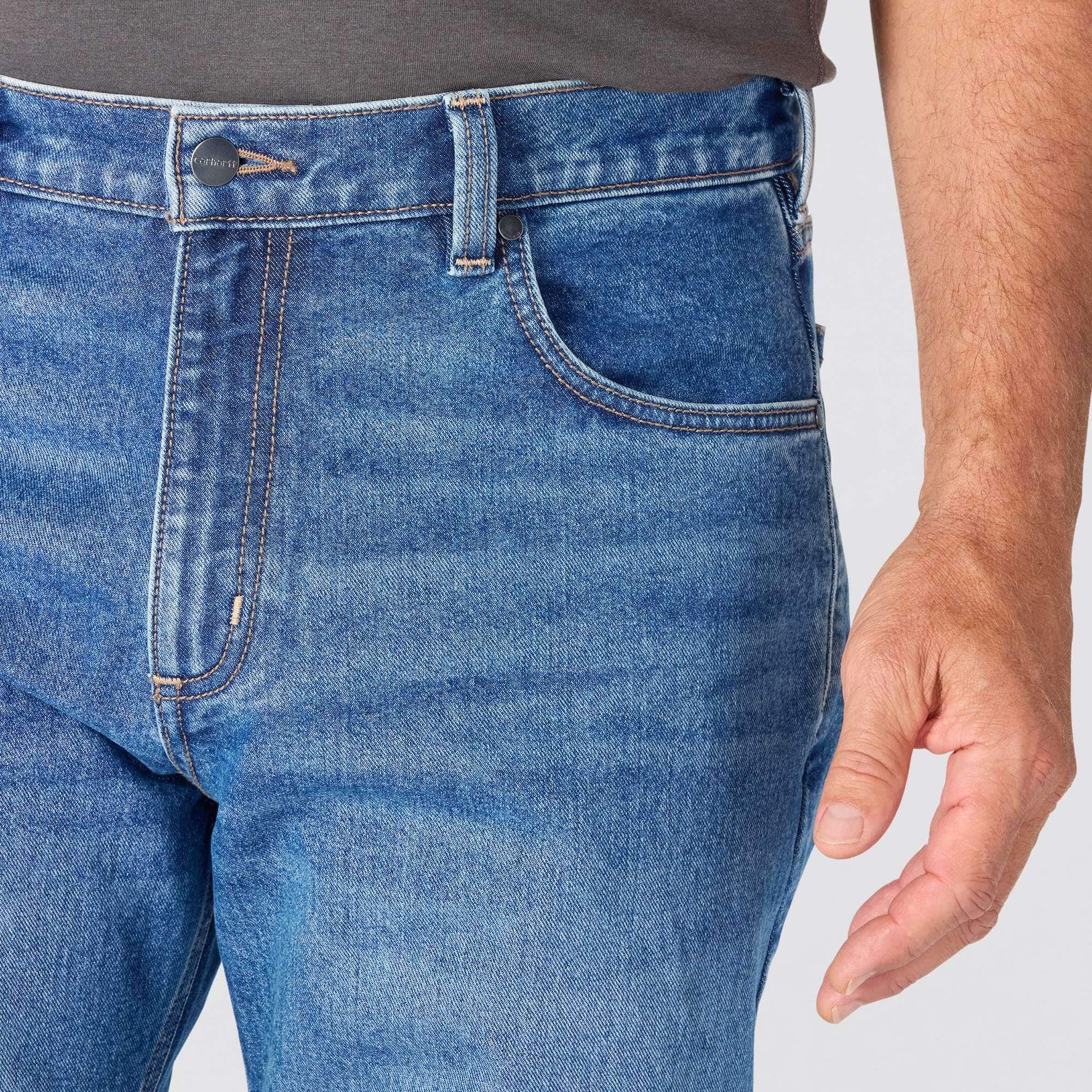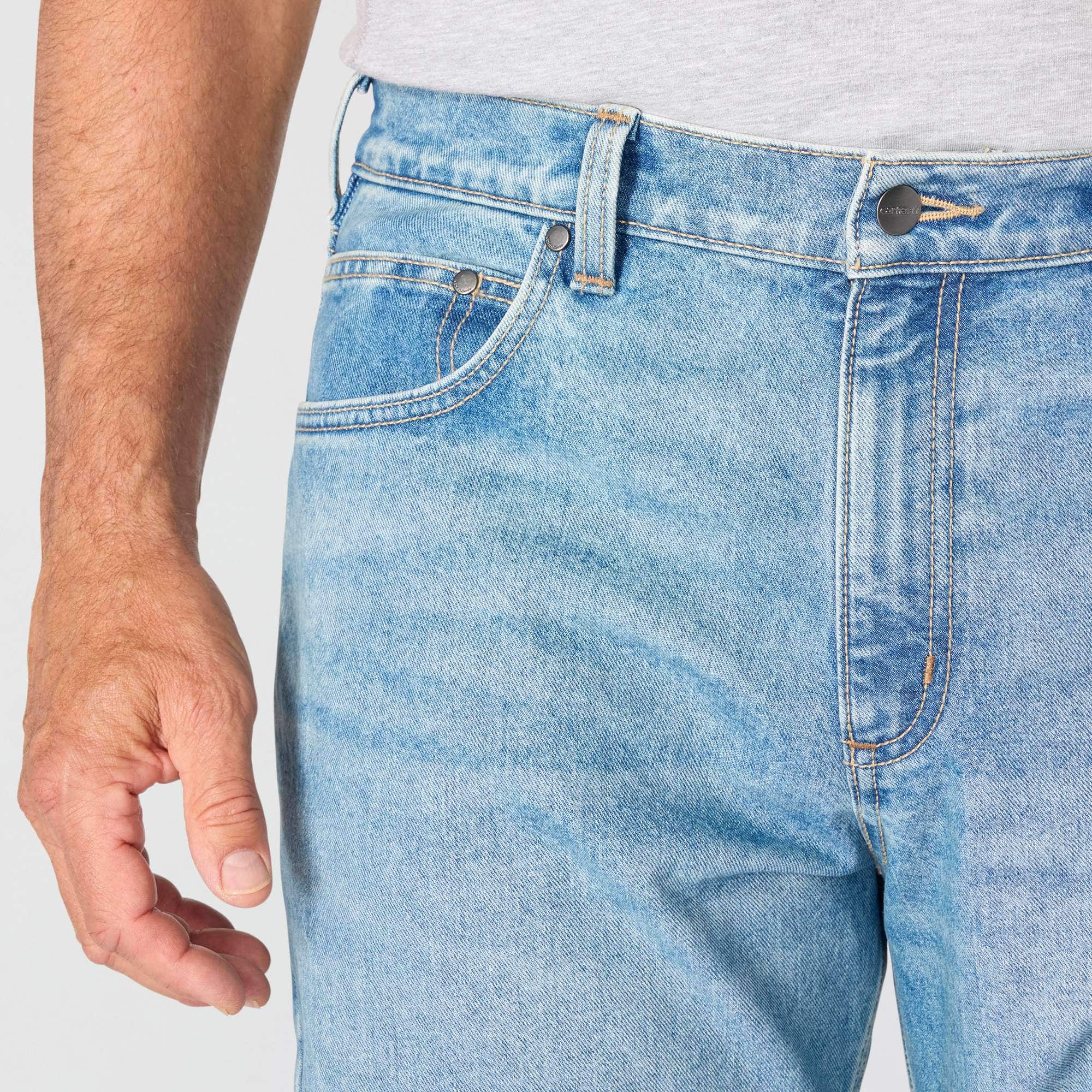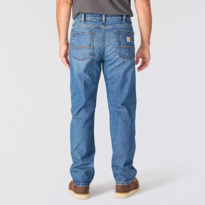 True to the Carhartt legacy, these men's loose fit jeans are built to work and designed to last. The durable 12.5 oz. denim has built-in flex and a loose fit through the seat and thigh for ease of mobility. The straight leg opening fits easily over most work boots.