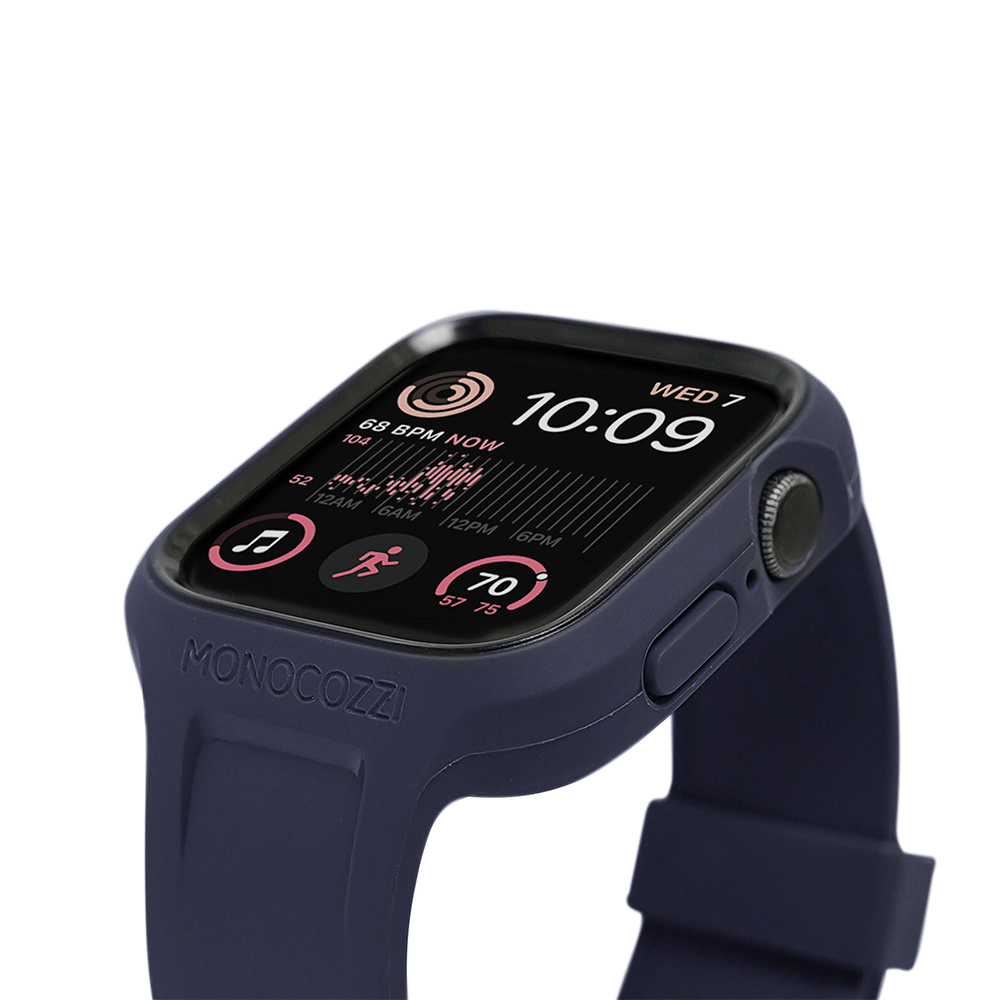 Monocozzi ESSENTIALS | Hybrid Soft Plastic Case with Strap for Apple Watch 45/44mm - Navy