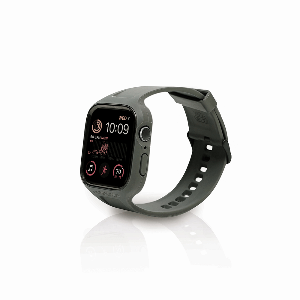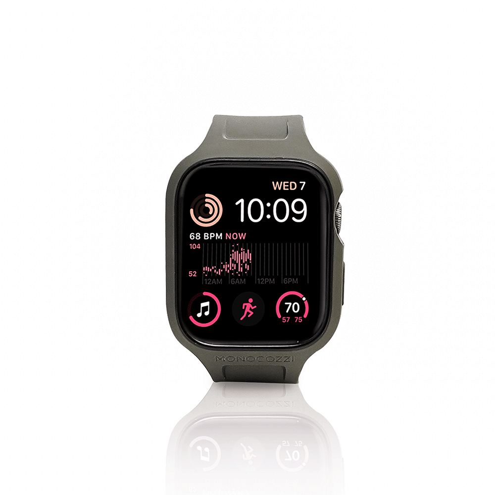 Monocozzi ESSENTIALS | Hybrid Soft Plastic Case with Strap for Apple Watch 45/44mm - Olive