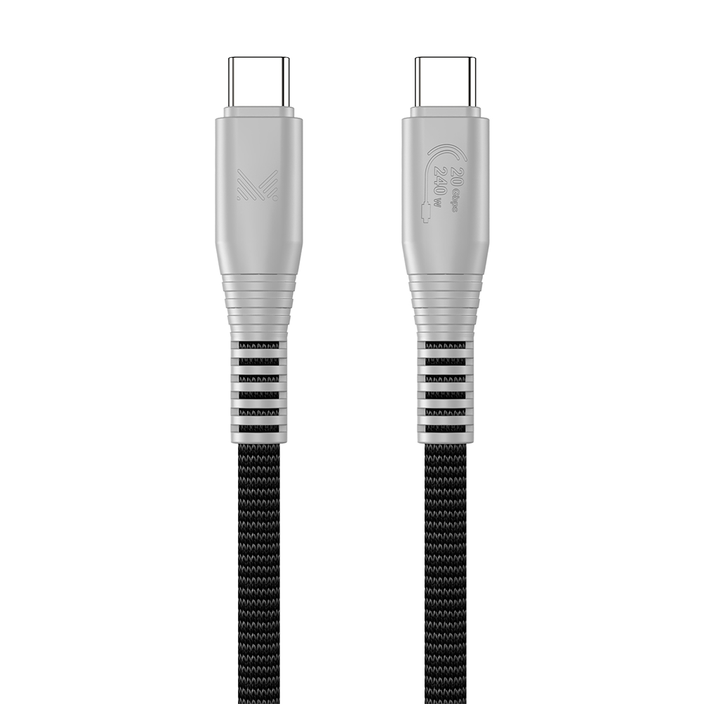 Monocozzi ESSENTIALS | USB-C To USB-C 240W 20Gbps Braided Sync & Charge Cable 1.2M - Charcoal
