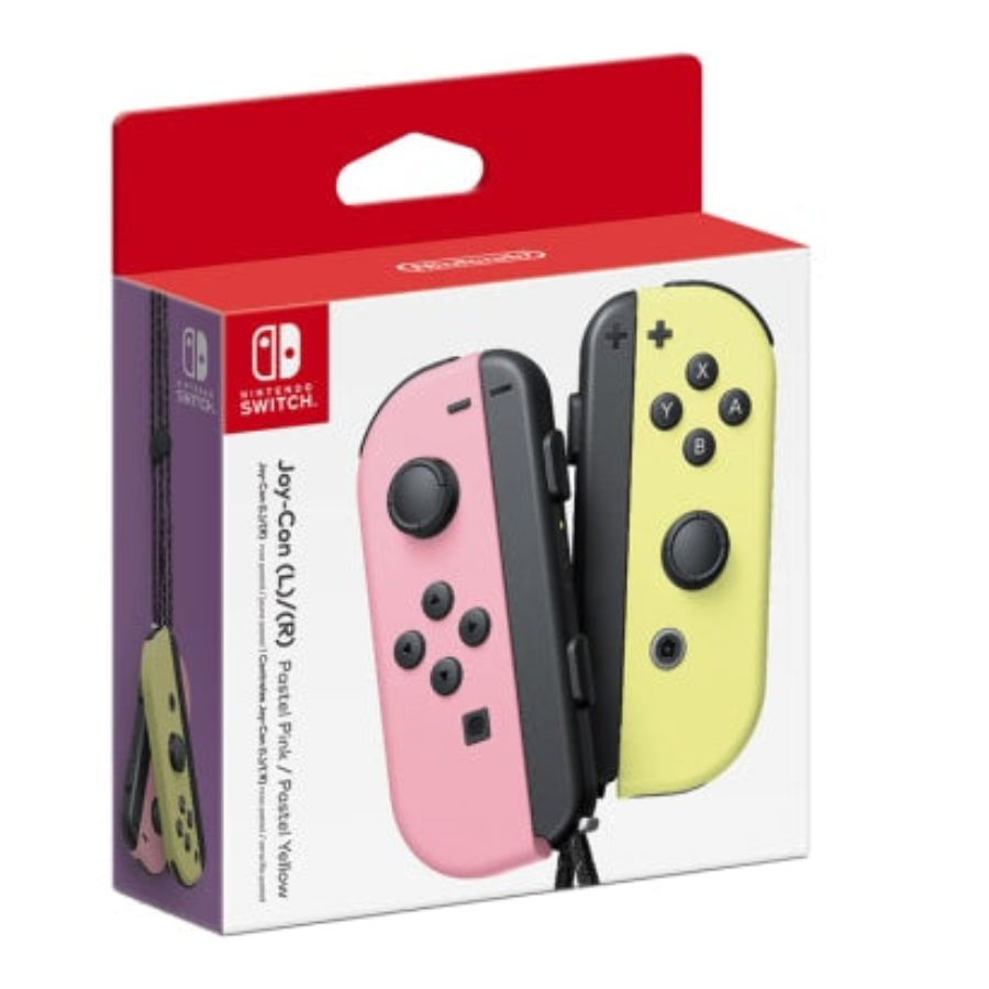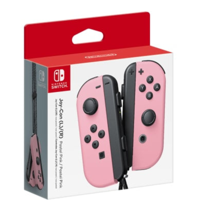 Includes one Pastel Pink left Joy-Con, one Pastel Pink right Joy-Con, and two Black Joy-Con Straps.