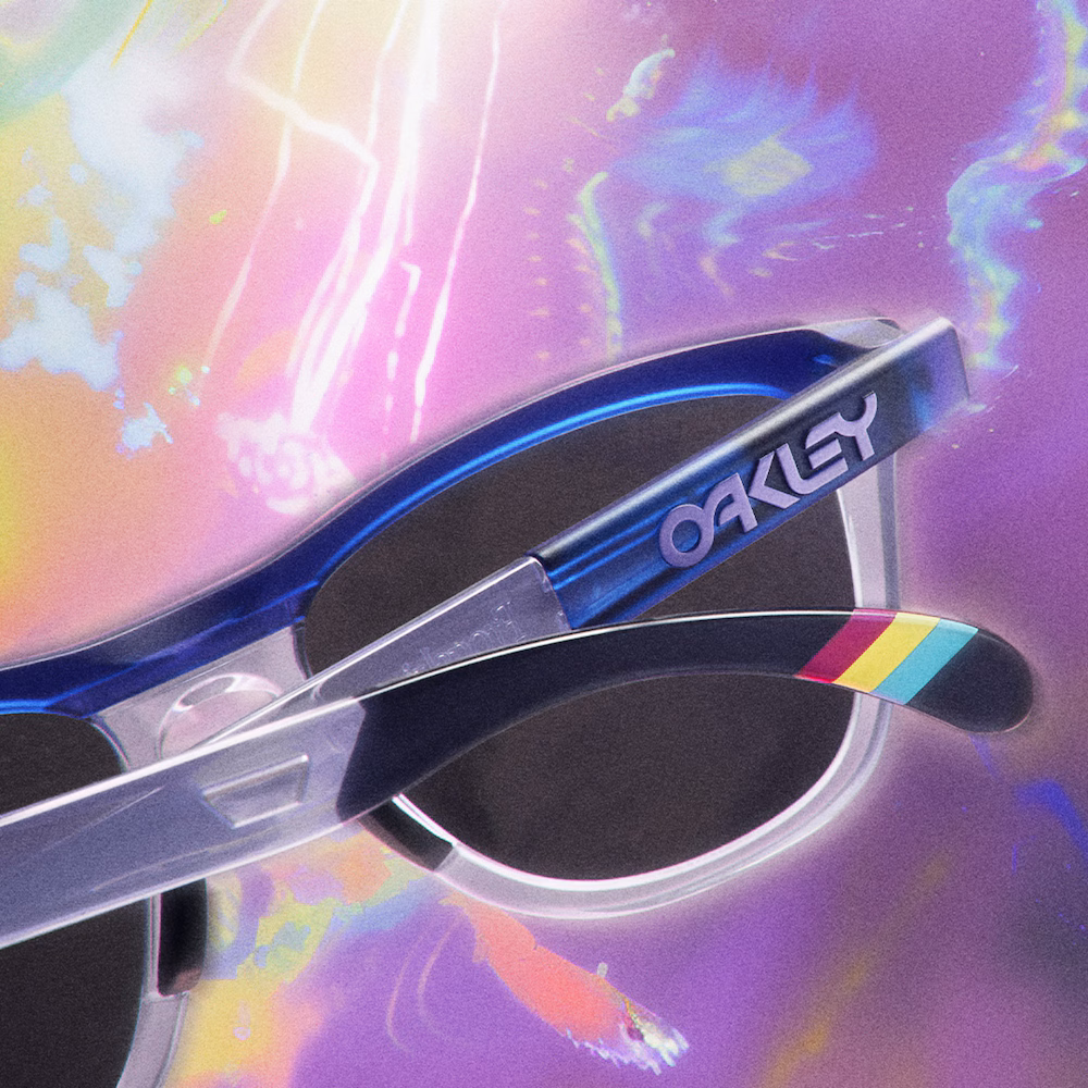Visually, the matte translucent blue and polished translucent lilac plant-based BiO-Matter®* frame material offers a compelling color blocking inspired from her outfit, while the pink Oakley B1B logos adds a touch of energy to the sidearms. Built Unobtanium® nosepads and molded-in earsocks, this eyewear offers no-slip grip and all-day comfort to enjoy the outdoors to the fullest. At the tip of the wearer’s left template, you’ll find the emblematic rainbow also worn by her allies. For enhanced color and contrast everywhere you look, the Prizm™ black lenses will help you see more detail.
