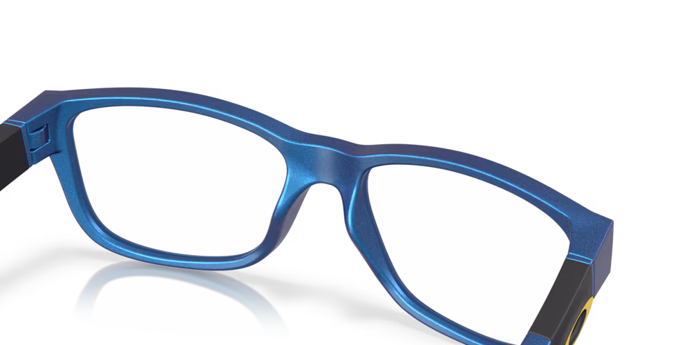 Inspired by the world of eSports and gaming, Top Level is created specifically for young gamers aged from 8 to 12 years old. Designed for lasting comfort, the lightweight O-Matter™ is engineered for durability while the thin temple architecture helps minimize interference with headsets to help enhance a gamer’s experience. Delivered in a unique cyan blue colorshift paint treatment that’s reminiscing of the famously known Battle Bus, yellow Ellipse logos and a metallic gold Fortnite brand on the wearer’s left temple,this style displays colors cues of the game while being suited for the everyday wear.