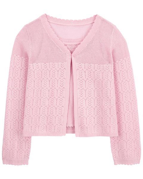 Oshkosh 2-Piece Pointelle Cardigan Set with Floral Print Denim Skirt