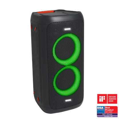 Bring the party with the portable power of JBI PartyBox 100. Ignite the night. Pick the perfect light show or let the music choose the mood. Mix it up. Pop in a playlist from your USB stick or stream from a Bluetooth-compatible device. Rock out on the fly with mic and guitar inputs. Find your sweet spot. Mount your speaker on a pole and immerse the room in dynamic JBI sound. Go all night with up to 12 hours of battery life. Plug your speaker into the wall to keep the tunes flowing.