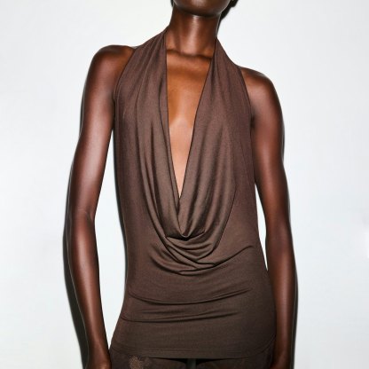 Head-turning halter. With a sexy plunge cowl neck and low back, this soft, slinky modal top is made to stun. Fits true to size.