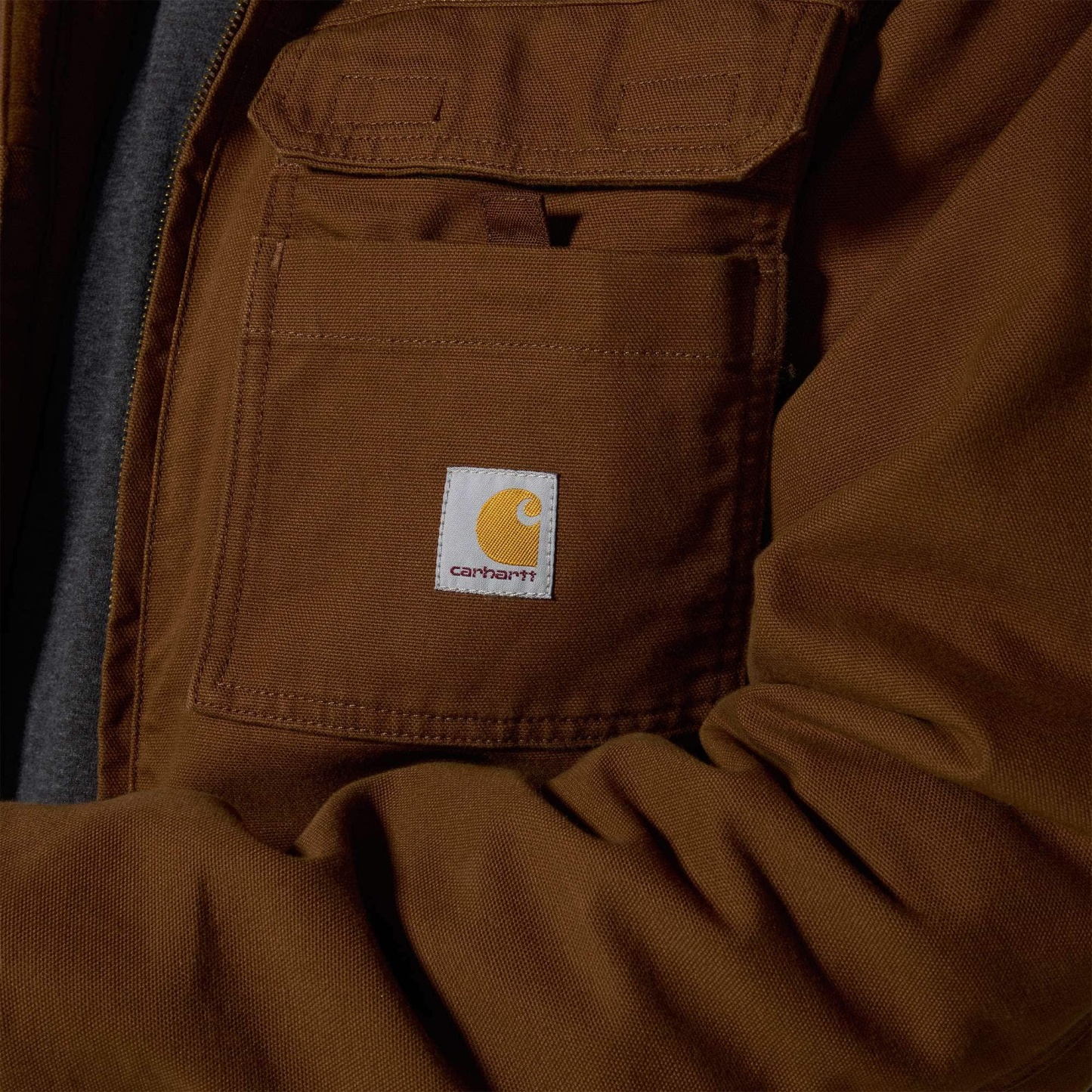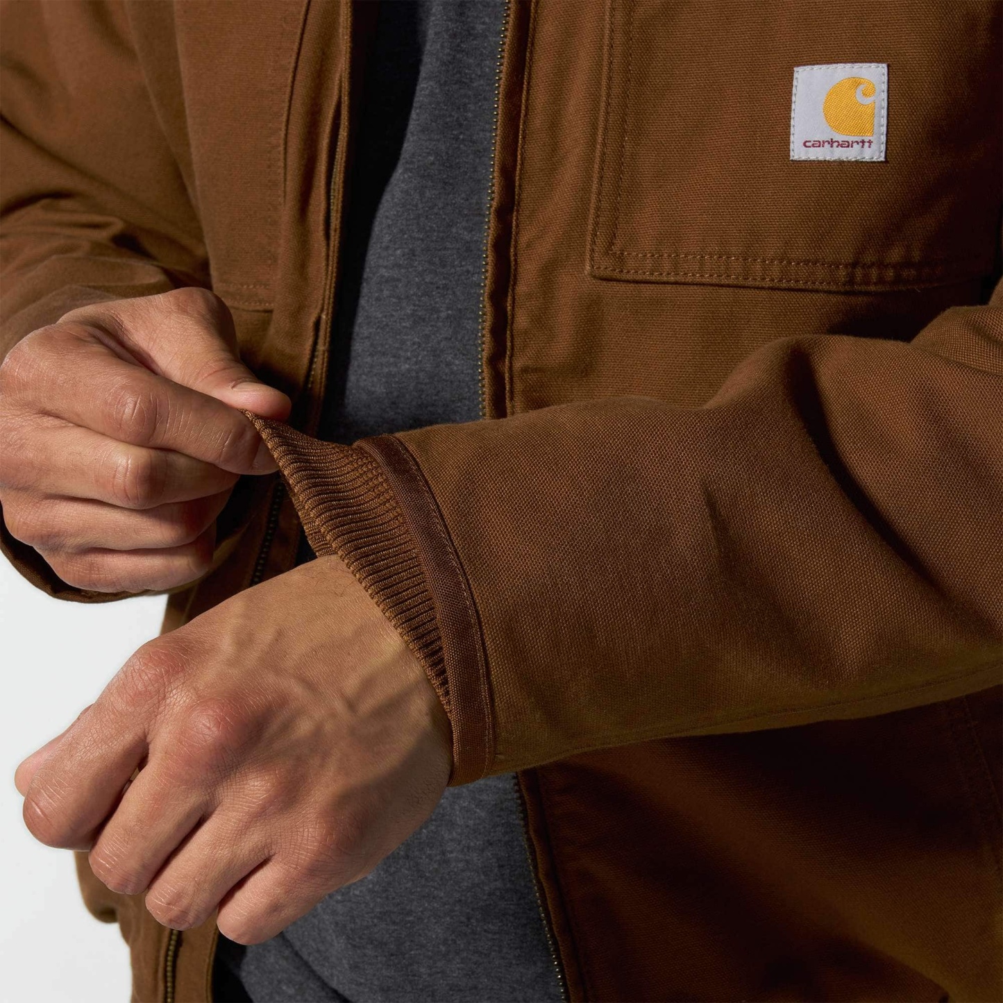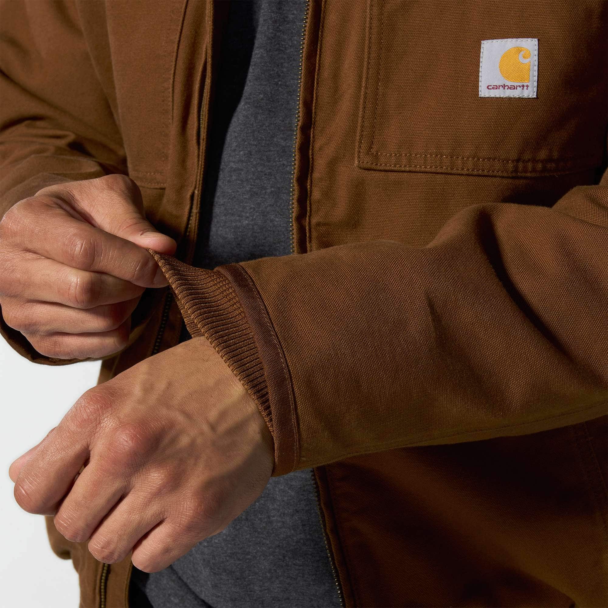 Insulated for warmth and broken in for easy movement, this men's Carhartt duck active jac is made for long work days in cold, windy weather. The 12-ounce canvas with reinforced cuffs delivers hard-wearing durability. Generous insulation throughout seals in warmth. A loose fit allows for easy layering and movement.